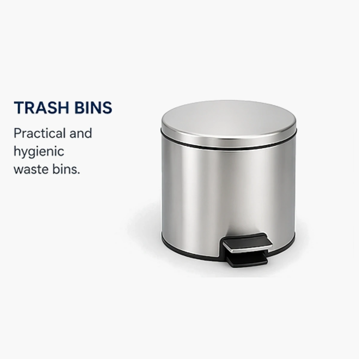 Trash Bins are practical and hygienic waste management solutions designed for residential, commercial, and public use. Available in various designs such as pedal-operated and manual lids, they provide convenience, durability, and easy cleaning. Their modern appearance makes them suitable for indoor and outdoor environments while maintaining cleanliness and organization.